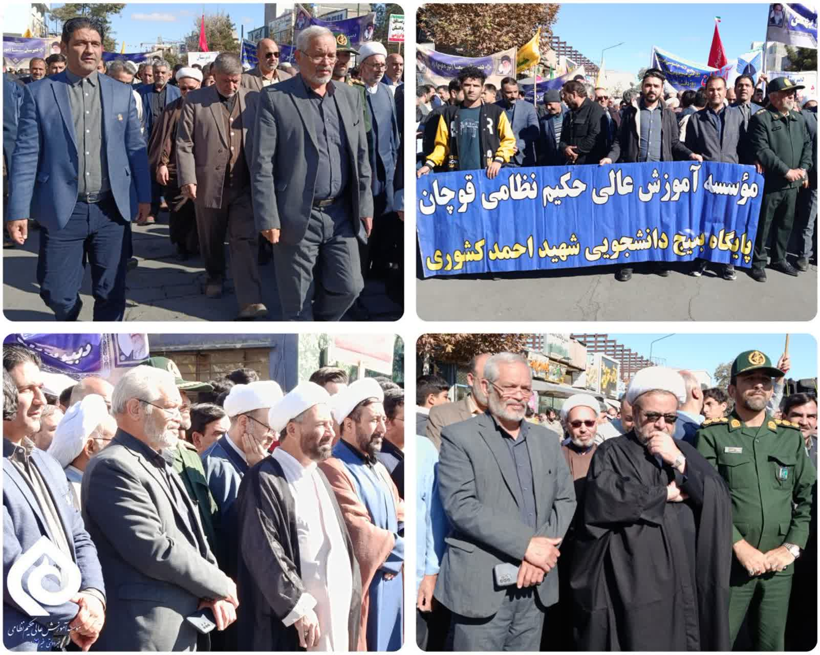 حضور ریاست محترم آقای دکتر فغانی،معاونت آموزشی ،کارکنان ،اساتید و دانشجویان موسسه آموزش عالی حکیم نظامی در راهپیمایی یوم الله 13 آبان شهرستان قوچان روز 13 آبان که روز ملی مبارزه با استکبار جهانی و روز دانش آموز و سالروز تسخیر لانه جاسوسی می باشد همچون سنوات گذشته با حضور ریاست محترم جناب آقای دکتر فغانی ،معاونت آموزشی ،کارکنان ،اساتید و دانشجویان موسسه آموزش عالی حکیم نظامی و آحاد مردم در ضمن محکومیت جنایات رژیم منحوس صهیونیستی و آمریکای جنایتکار برگزار گردید. ...