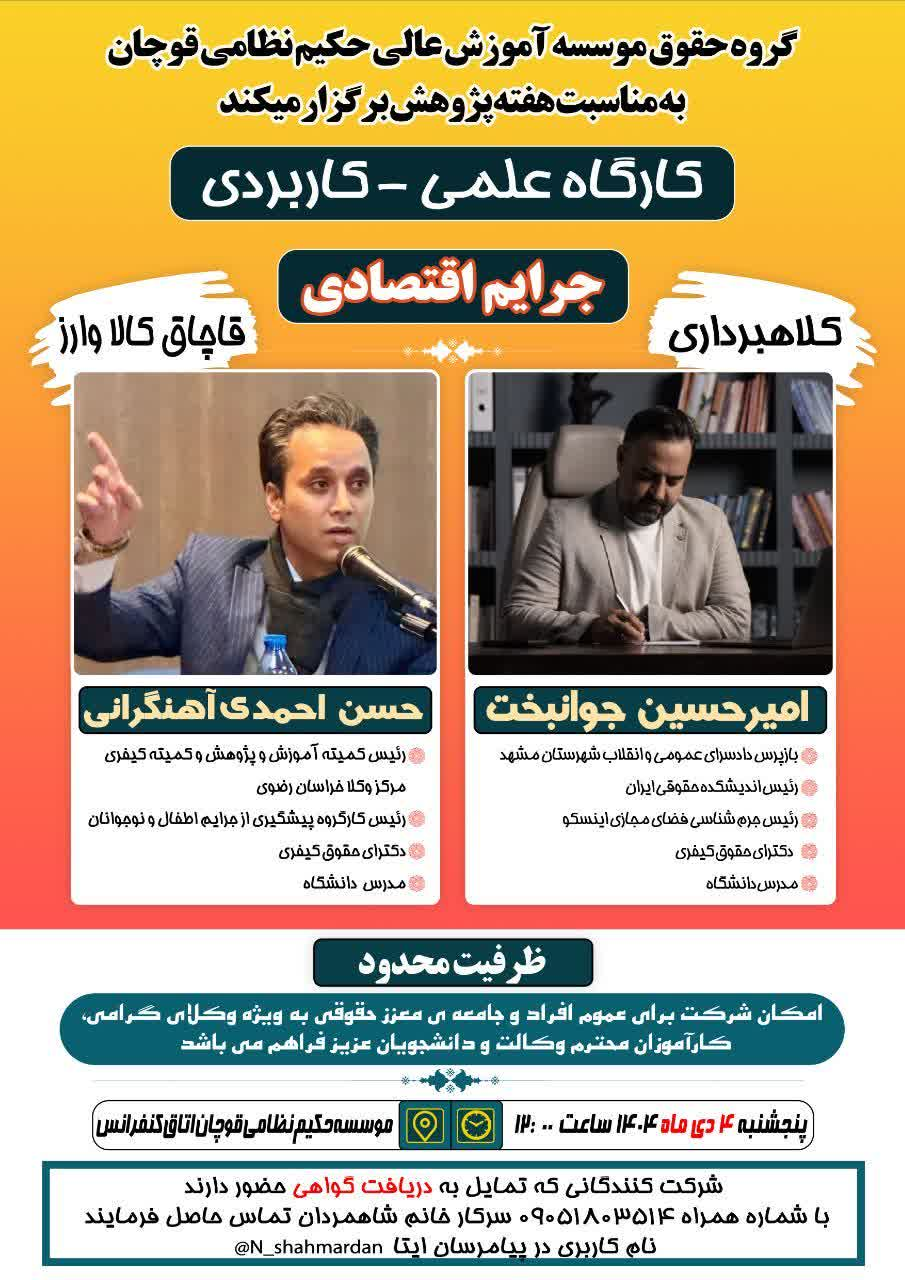 ♦️اطلاعیه امور مالی♦️ بدینوسیله از دانشجویان محترمی که بدهی شهریه نیمسال اول سال تحصیلی ١۴٠۵-١۴٠۴ خود را تا کنون تسویه نکرده اند خواهشمند است برای امکان دسترسی به کارت ورود به جلسه امتحان، نسبت به پرداخت و تسویه بدهی خود تا ٢۵ آذر ماه اقدام نمایند. شماره تماس واحد شهریه 47211774 داخلی 15، ...