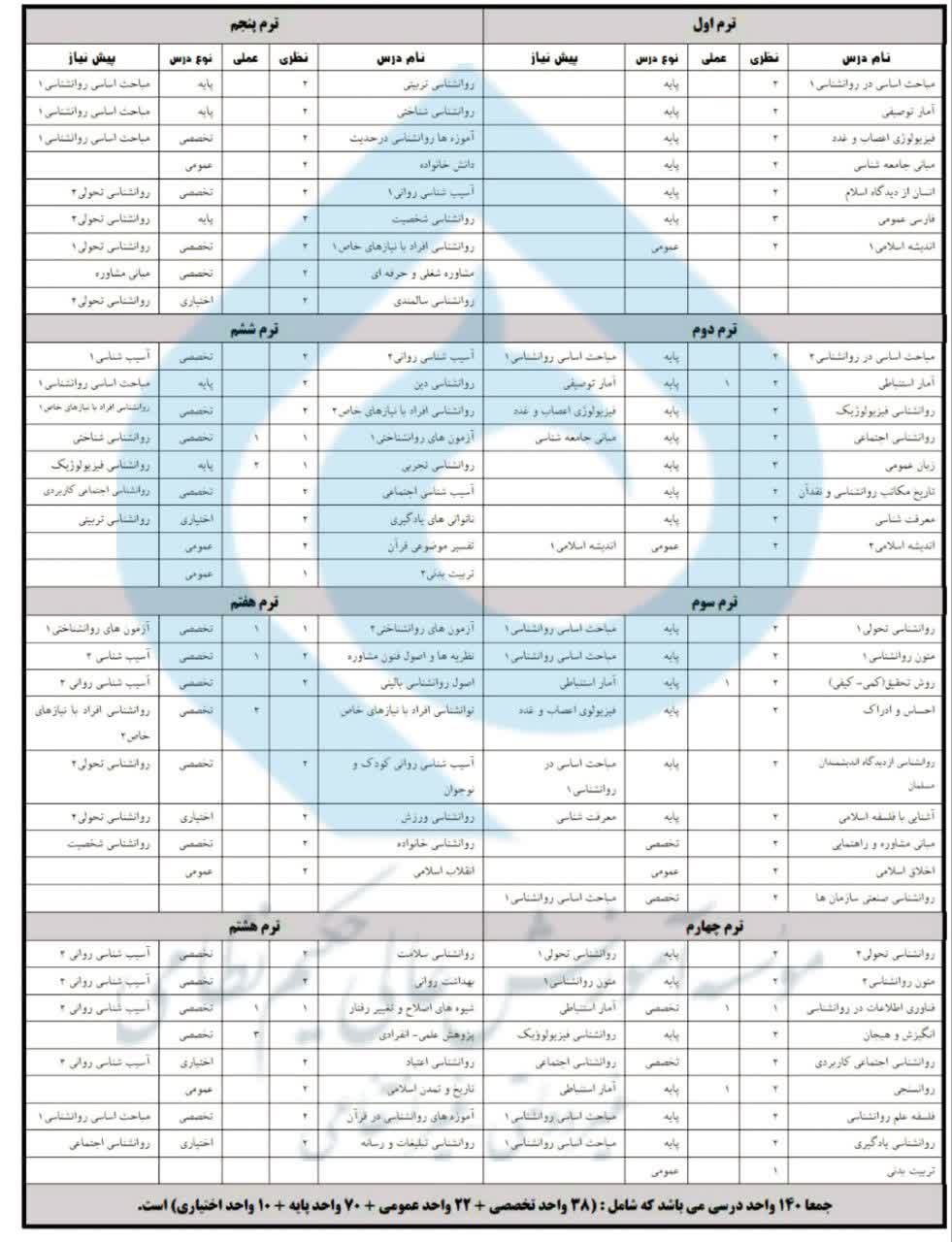 7. کارشناسی پیوسته روانشناسی دریافت چارت تحصیلی (آخرین به روزرسانی درتاریخ(1404/09/09))