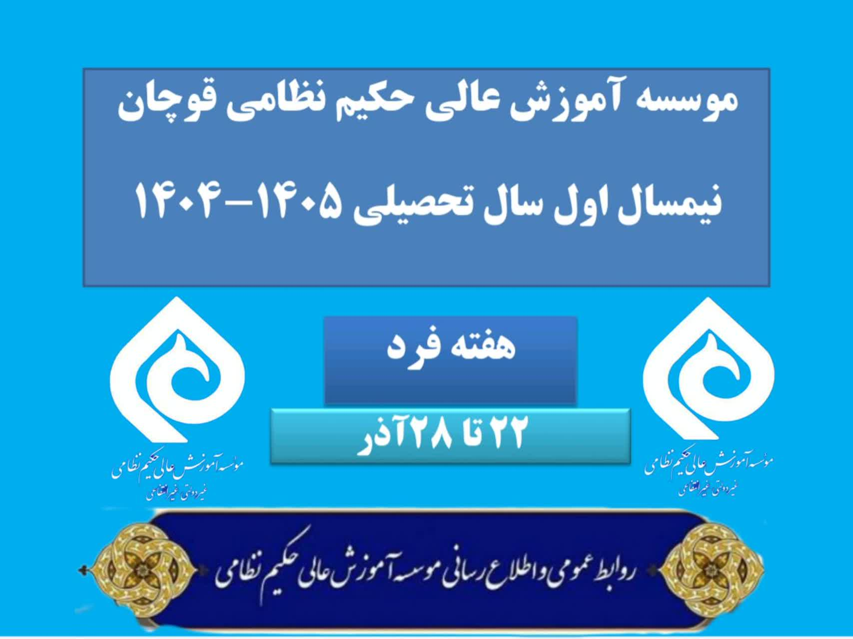 جشن گرامیداشت روز زن و روز دانشجو در روز پنجشنبه به تاریخ 1404/09/20 با حضور ریاست محترم هیات موسس و امنا آقای دکتر اکبری ، ریاست موسسه آقای دکتر فغانی ، آقای دکتر صالحی عضو هیات موسس و امنا،آقای دکتر نقش بندی معاونت محترم آموزشی و پژوهشی ،اساتید و کارکنان و دانشجویان برگزار گردید. اهم برنامه های این جشن : 1_تلاوت قرآن کریم 2_پخش سرود ملی جمهوری اسلامی ایران 3_صلوات خاصه امام رضا(ع) 4_عرض تبریک و خیرمقدم آقای دکتر نقش بندی به ریاست و دانشجویان 5_ سخنرانی آقای دکتر فغانی 6_مسابقات متنوع برای دانشجویان 7_اجرای گروه موسیقی موسسه 8_تقدیر و اهدای جوایز به دانشجویان برتر مسابقات 9_پذیرایی ...